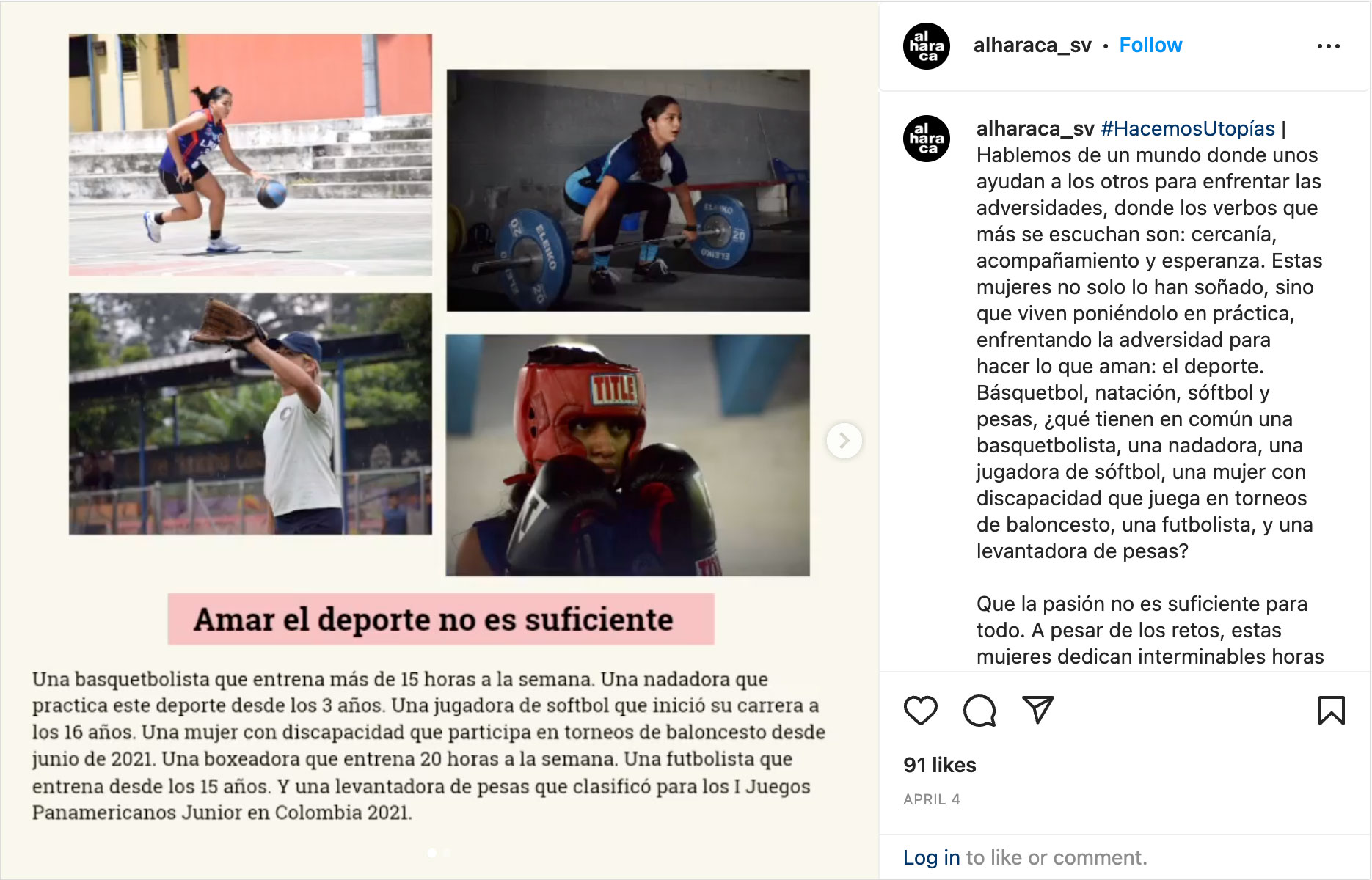Alharaca produjo una amplia gama de contenidos para diferentes plataformas, con especial atención a Facebook, la más utilizada en el país. Contaron historias como la de Los Angelitos, que en ausencia del Estado demostraron agencia para organizarse, la de ecologistas o simplemente la de una escuela de taekwondo que enseña defensa personal. Experimentaron con diferentes formatos y encontraron que los vídeos generaban mayor alcance y participación. También funcionaron bien los carruseles que mezclaban imágenes, diseño, consejos y, en general, profundizaban en la narrativa.